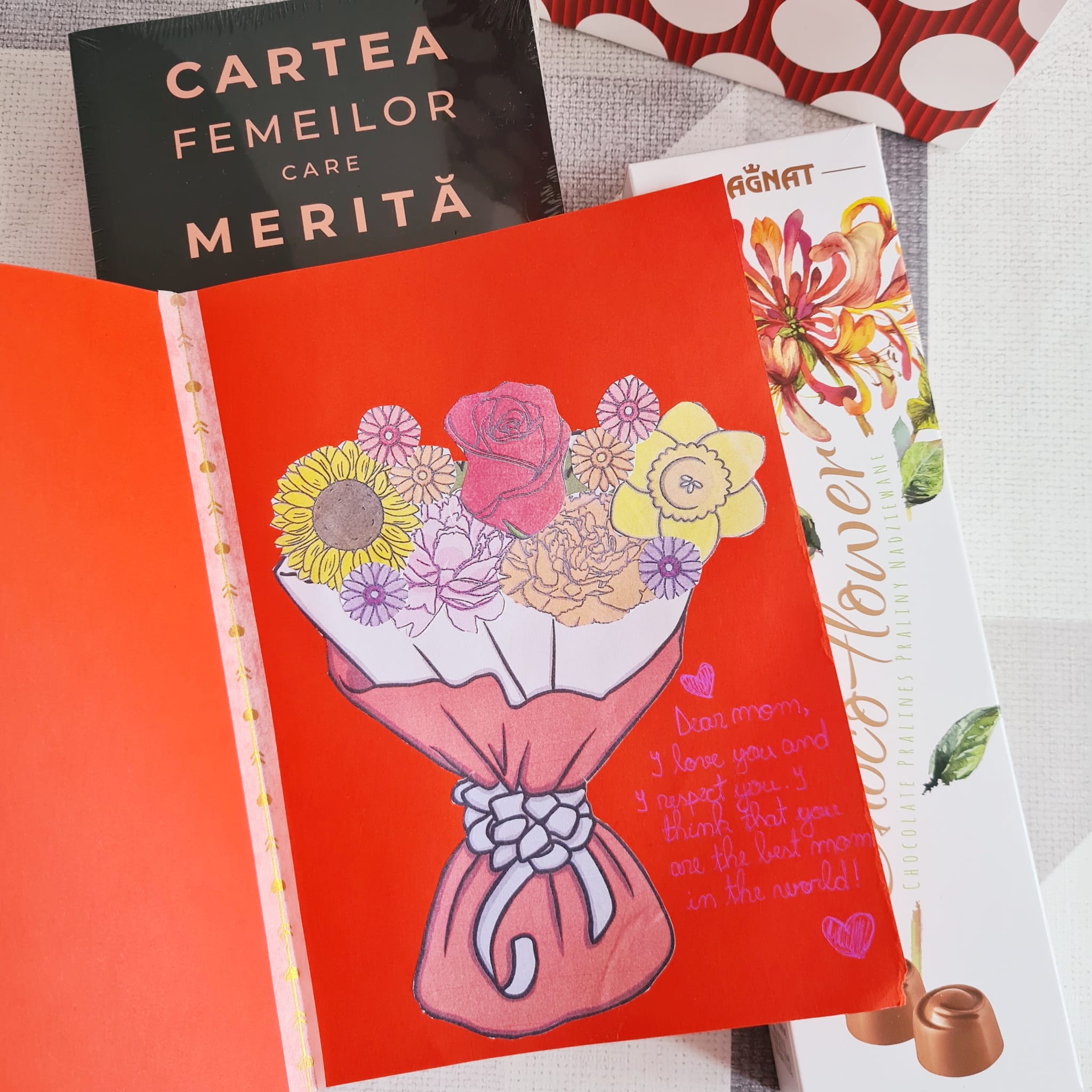 Traiesc cu recunostinta aceasta zi si ma bucur ca voi putea celebra momentul cu mama mea minunata, la o piesa de teatru „Despre dragoste”, alaturi de fiica mea care m-a surpins cu cele mai calde urari si alaturi de celelalte femei minunate pe care am avut sansa sa le intalnesc in drumul meu in aceasta viata.